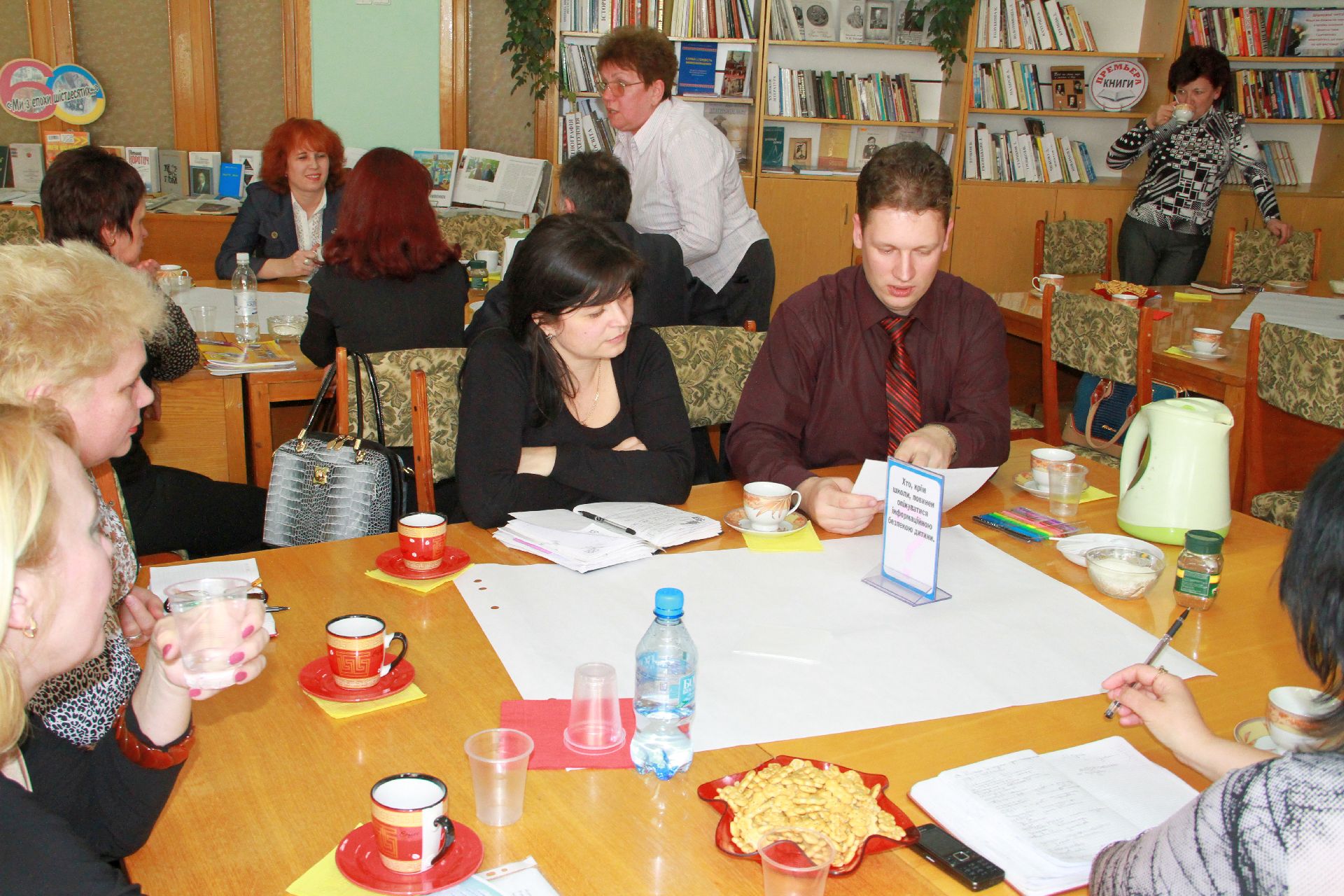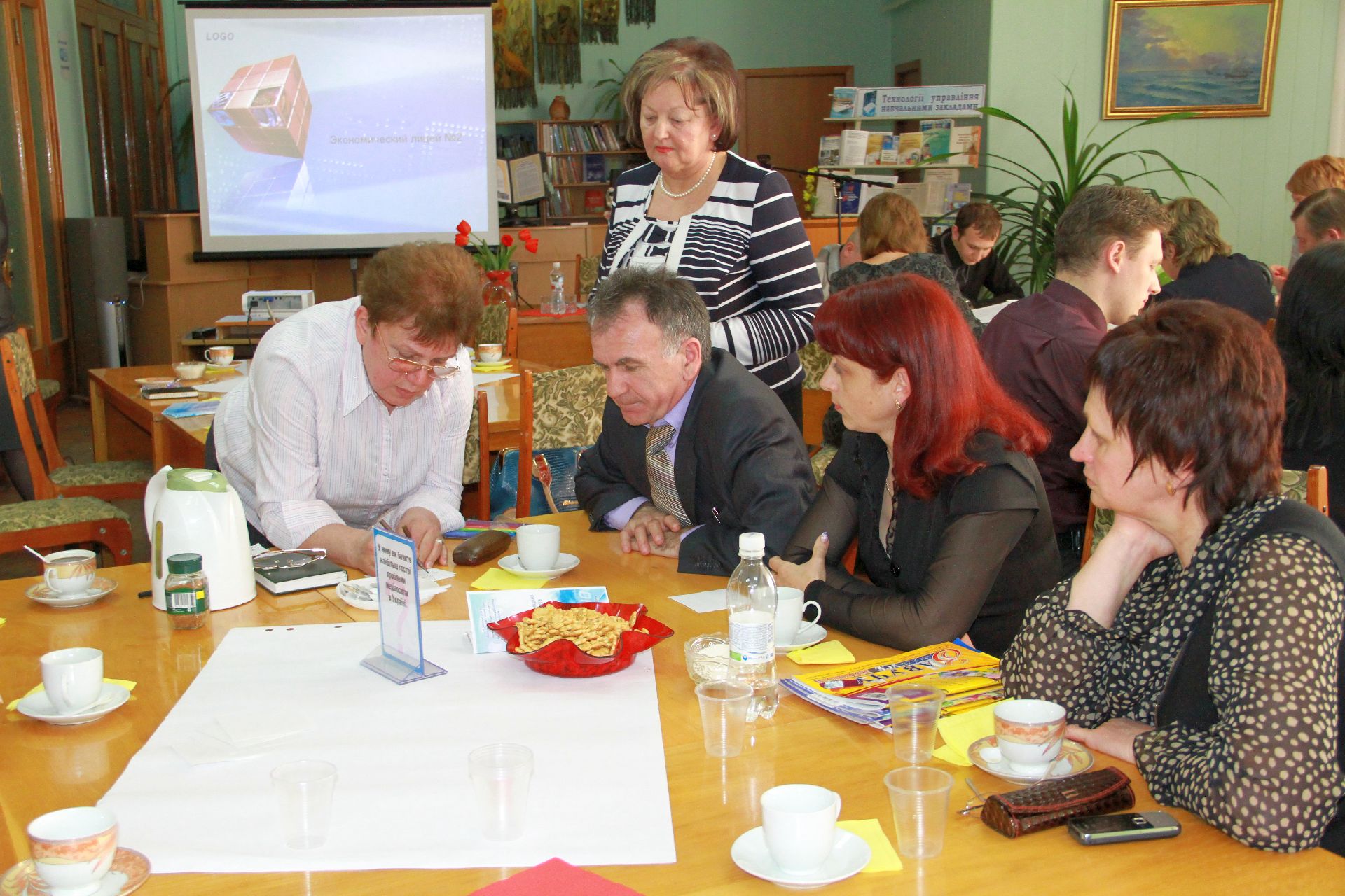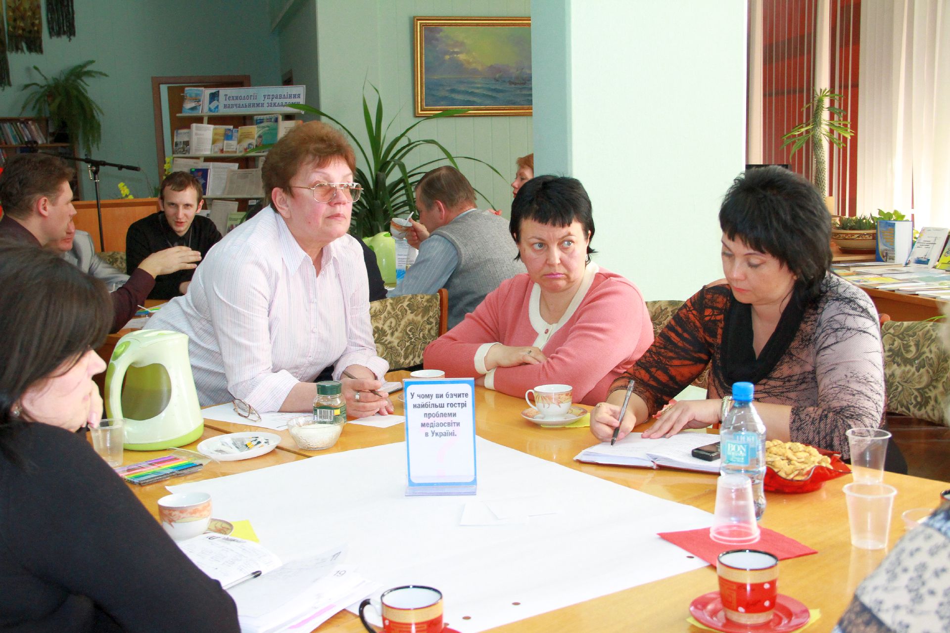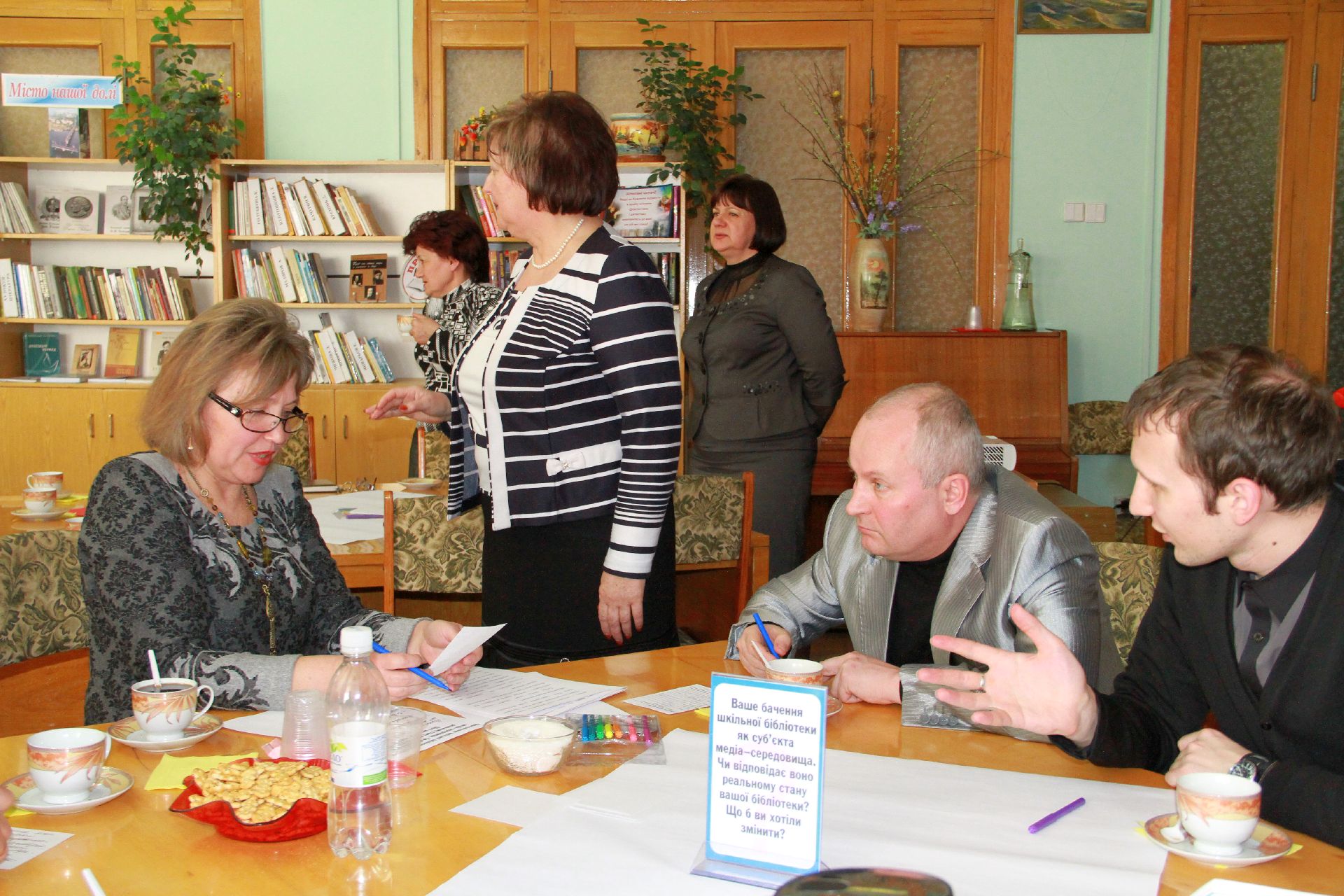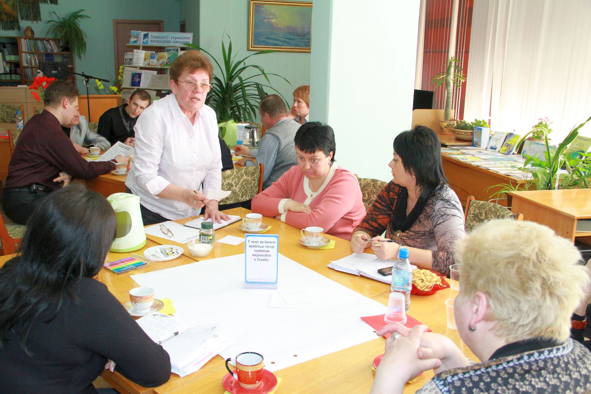 23 квітня на базі нашої бібліотеки відбулося «Світове кафе» на тему: «Роль медіаосвіти у формуванні інформаційної культури педагогів та учнів в умовах інноваційної діяльності». Учасники заходу – директори навчальних закладів, спеціалісти науково-методичного центру та фахівці науково-педагогічної бібліотеки намагалися визначити основні завдання і методи ефективної діяльності навчальних закладів через застосування медіатехнологій в освіті.