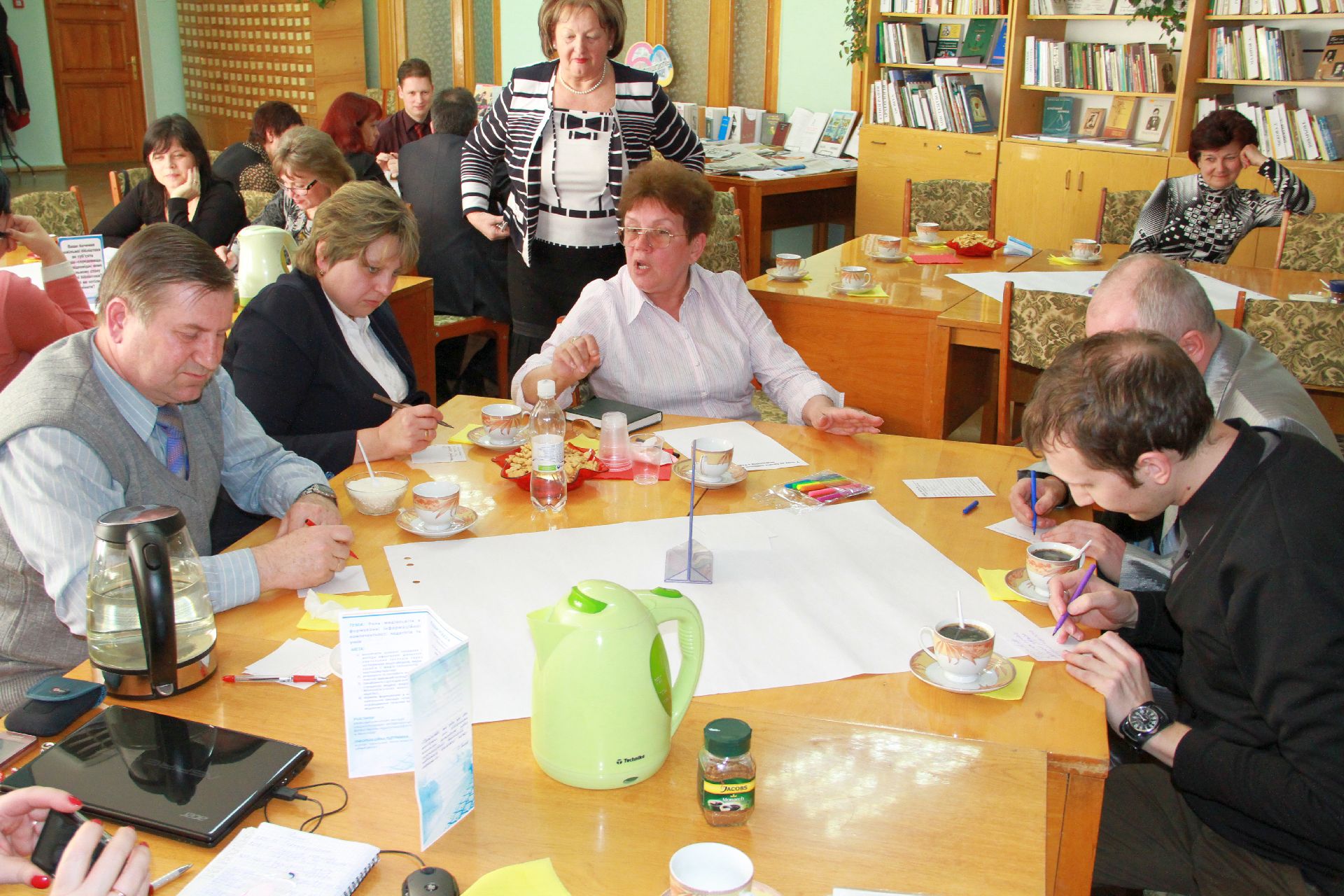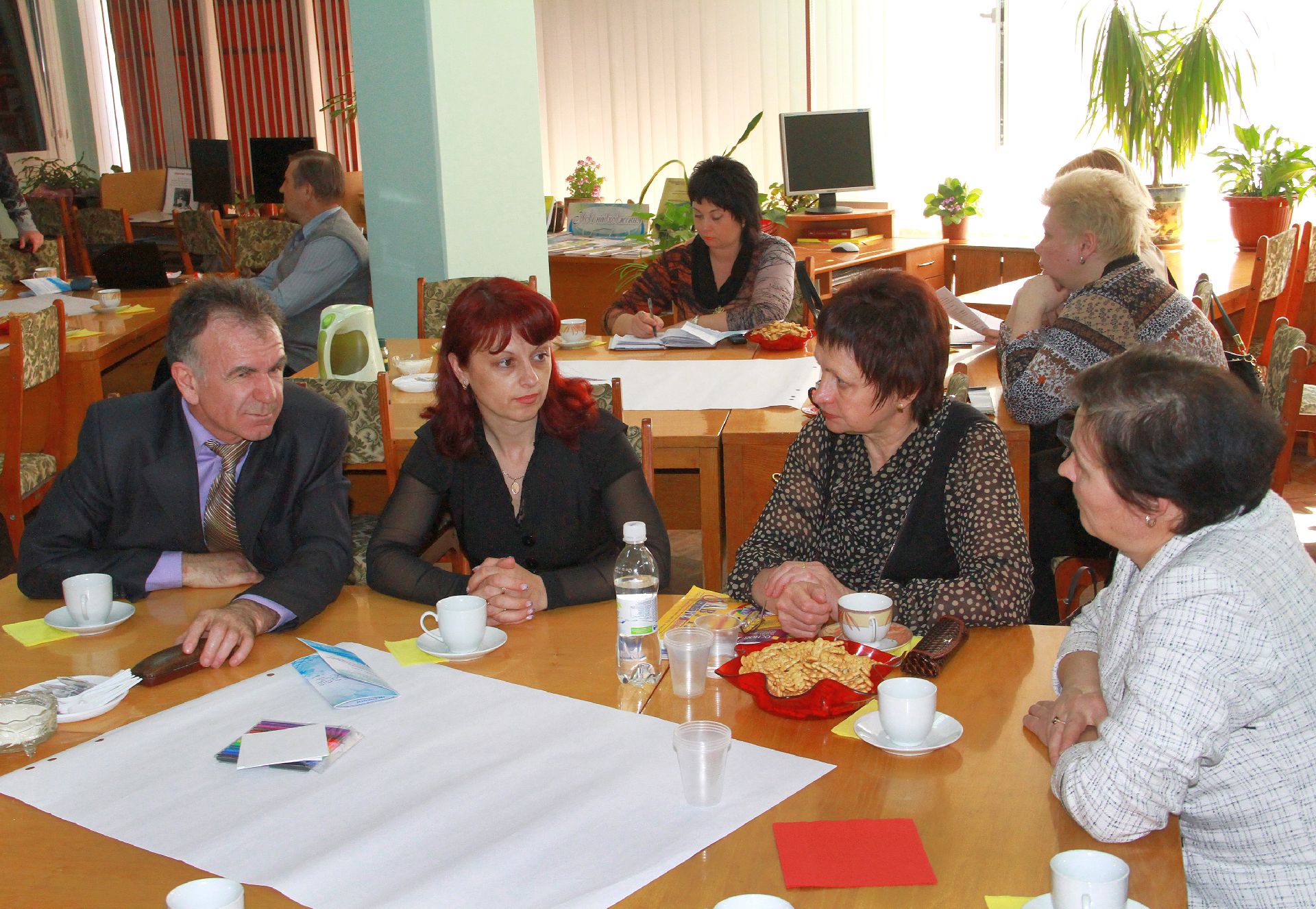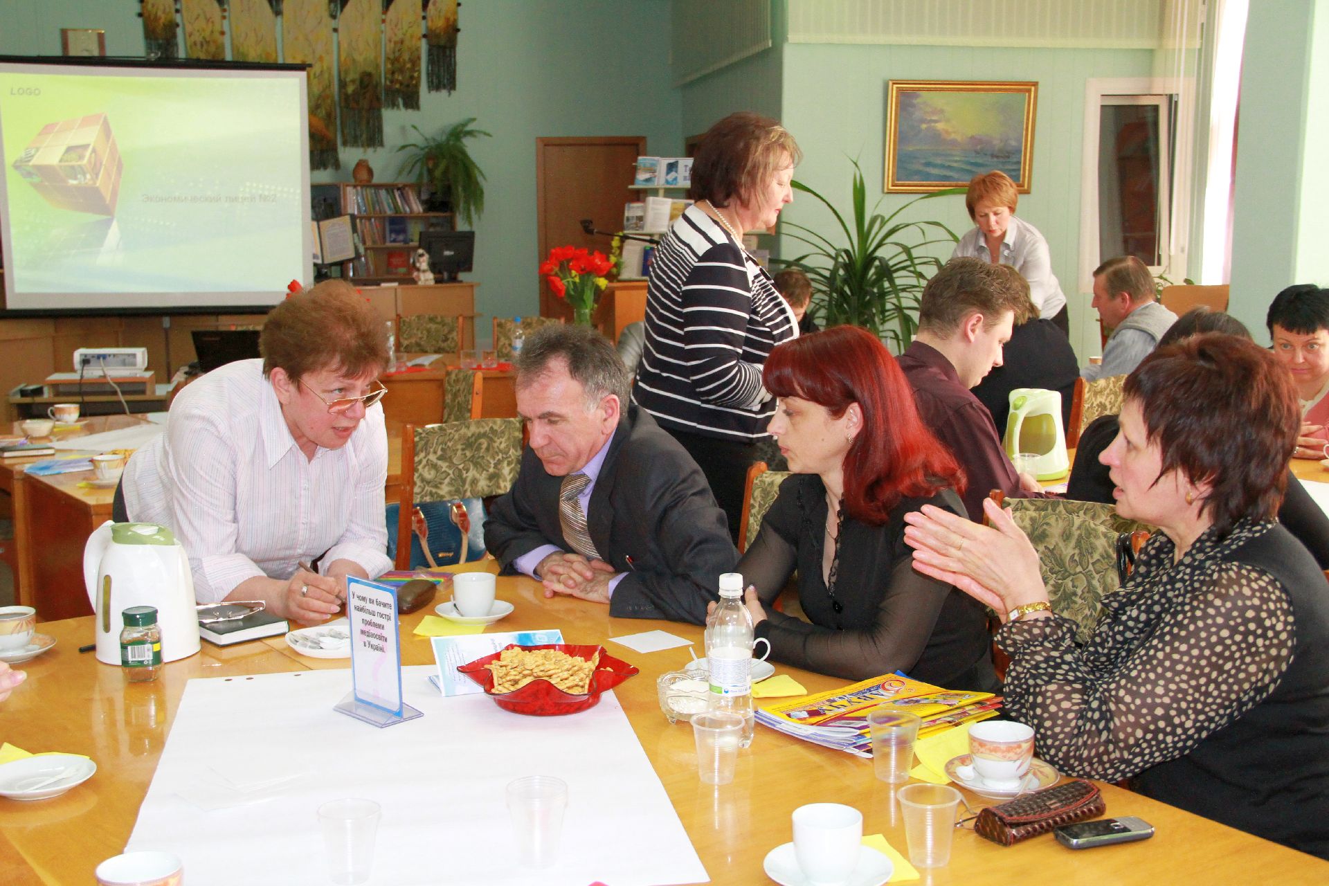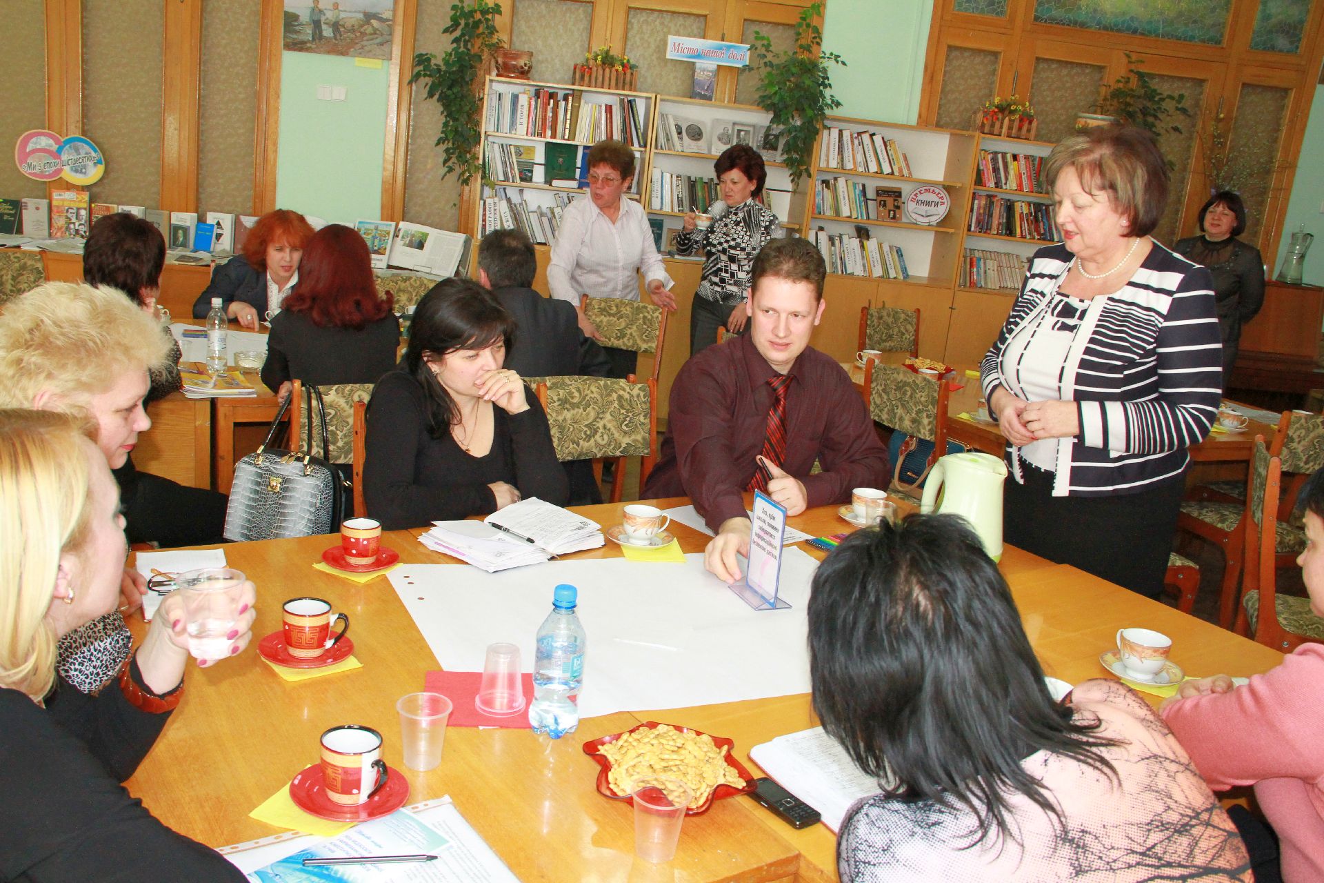 23 квітня на базі нашої бібліотеки відбулося «Світове кафе» на тему: «Роль медіаосвіти у формуванні інформаційної культури педагогів та учнів в умовах інноваційної діяльності». Учасники заходу – директори навчальних закладів, спеціалісти науково-методичного центру та фахівці науково-педагогічної бібліотеки намагалися визначити основні завдання і методи ефективної діяльності навчальних закладів через застосування медіатехнологій в освіті.