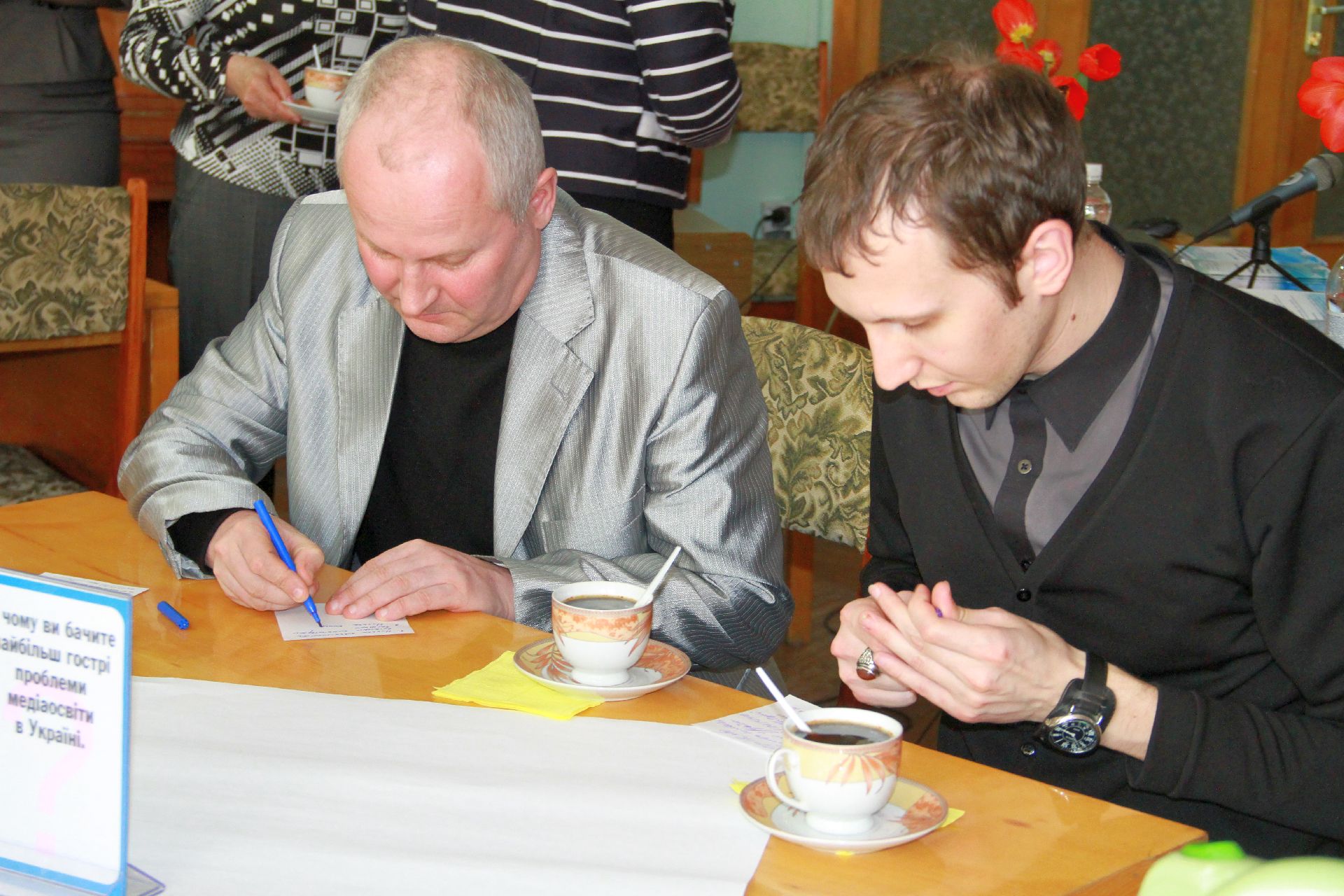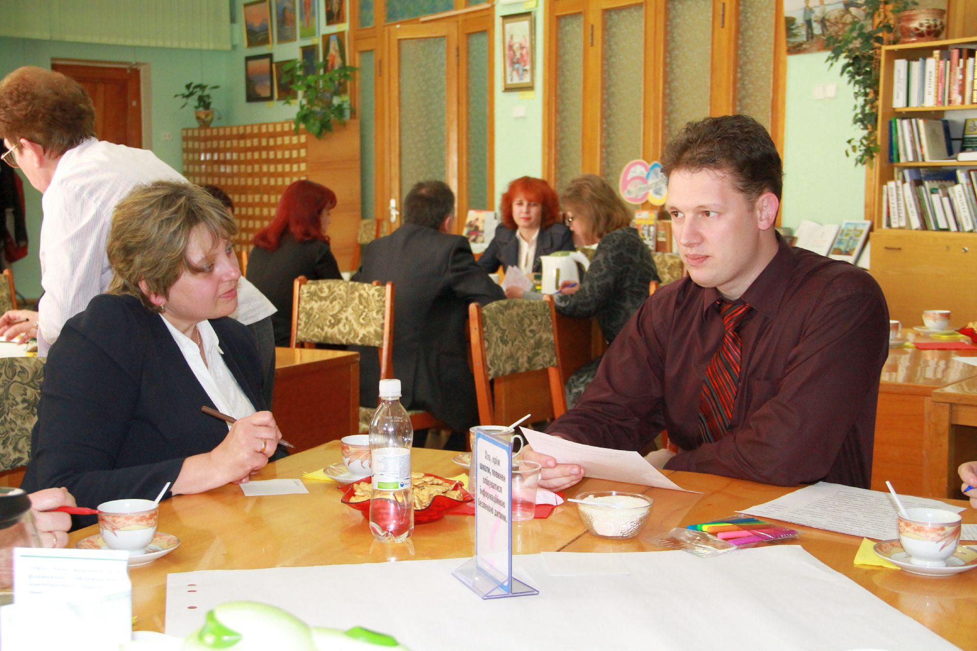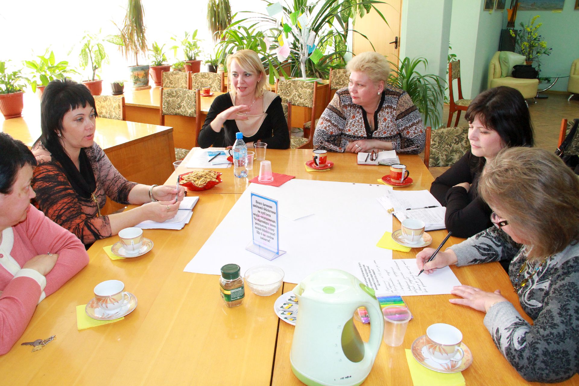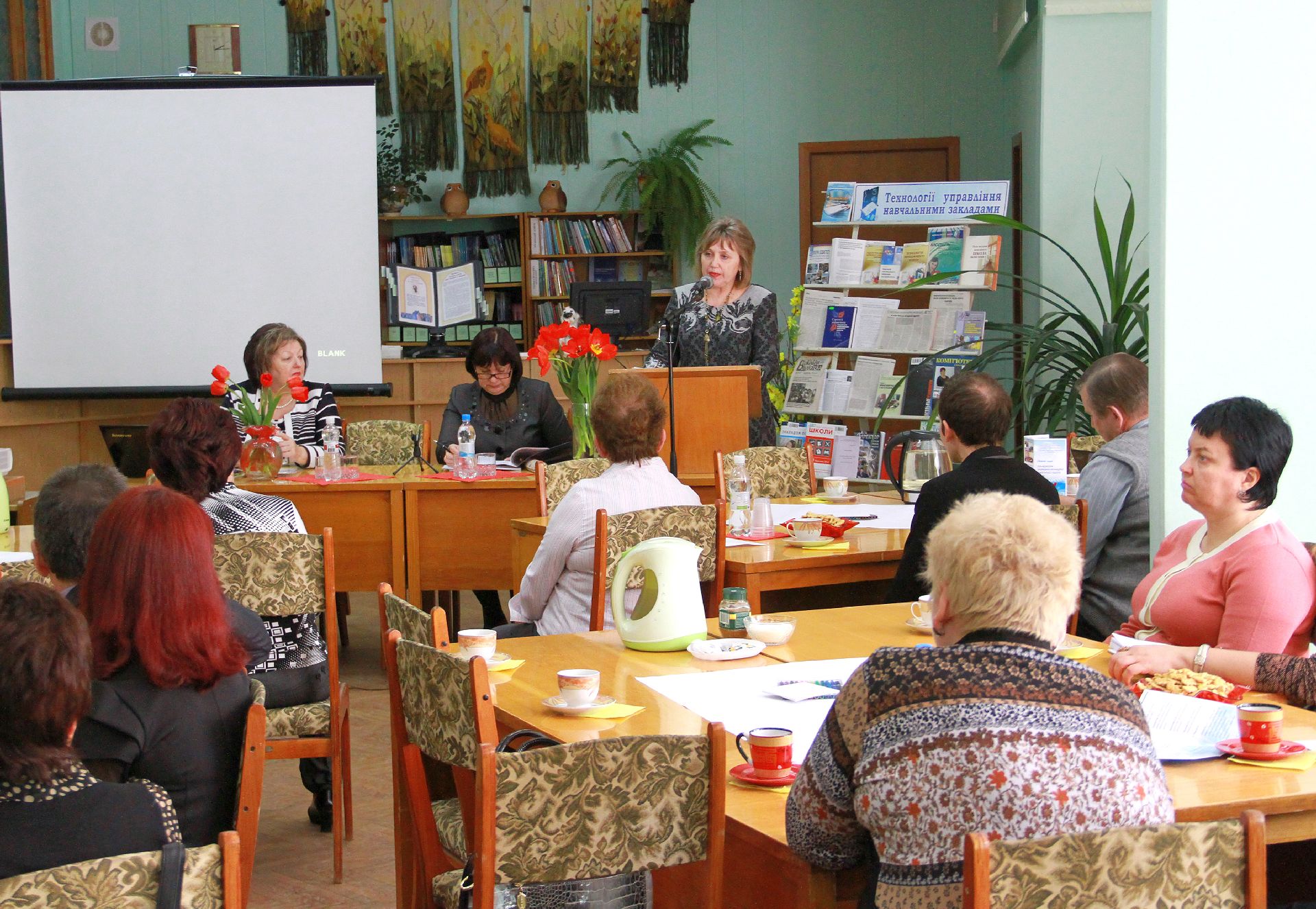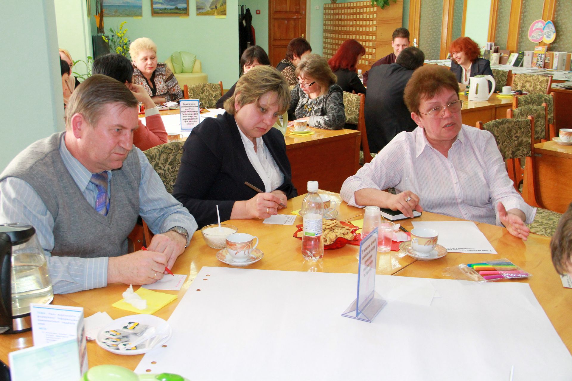 23 квітня на базі нашої бібліотеки відбулося «Світове кафе» на тему: «Роль медіаосвіти у формуванні інформаційної культури педагогів та учнів в умовах інноваційної діяльності». Учасники заходу – директори навчальних закладів, спеціалісти науково-методичного центру та фахівці науково-педагогічної бібліотеки намагалися визначити основні завдання і методи ефективної діяльності навчальних закладів через застосування медіатехнологій в освіті.