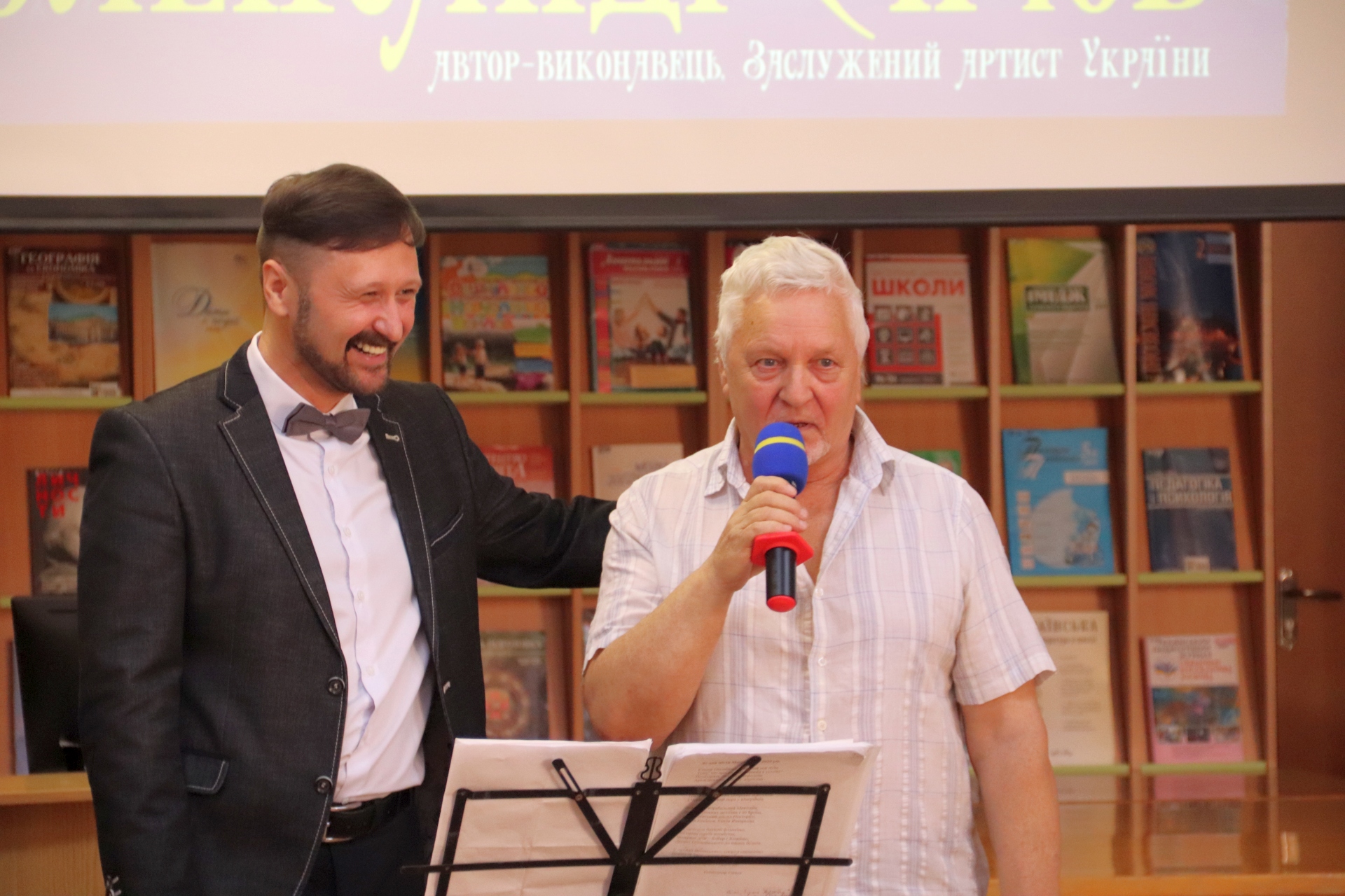 Спілкування автора з аудиторією відбувалось під супровід гітари, виконавець – Лариса Дедулян.
