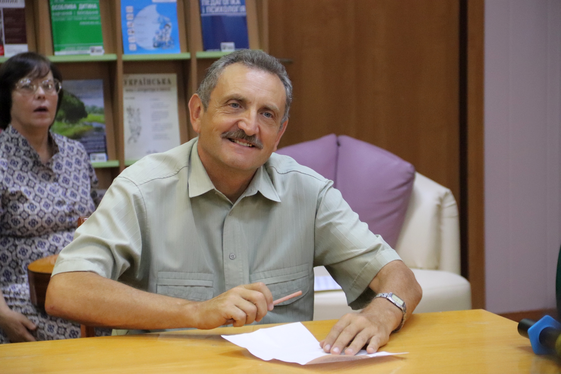 Про підтримку соціальної активності слухачів «університету третього віку» в умовах сучасної бібліотеки розповів директор науково-педагогічної бібліотеки міста Миколаєва Картузов Костянтин Миколайович.